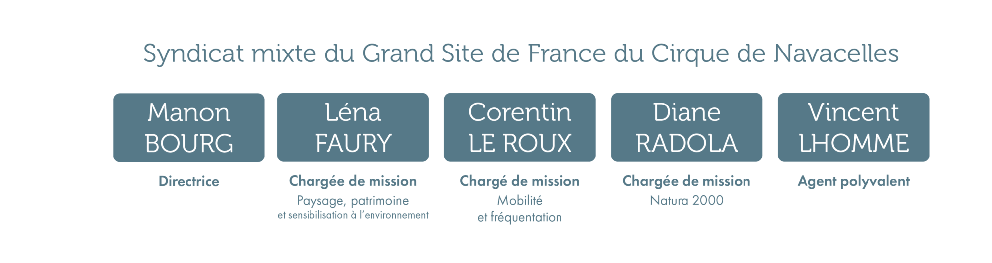 Composée de 5 personnes dont un agent sur le terrain, le Syndicat mixte accueille ponctuellement des volontaires en service civique, des stagiaires selon les thématiques de travail et des écovolontaires durant la période estivale.